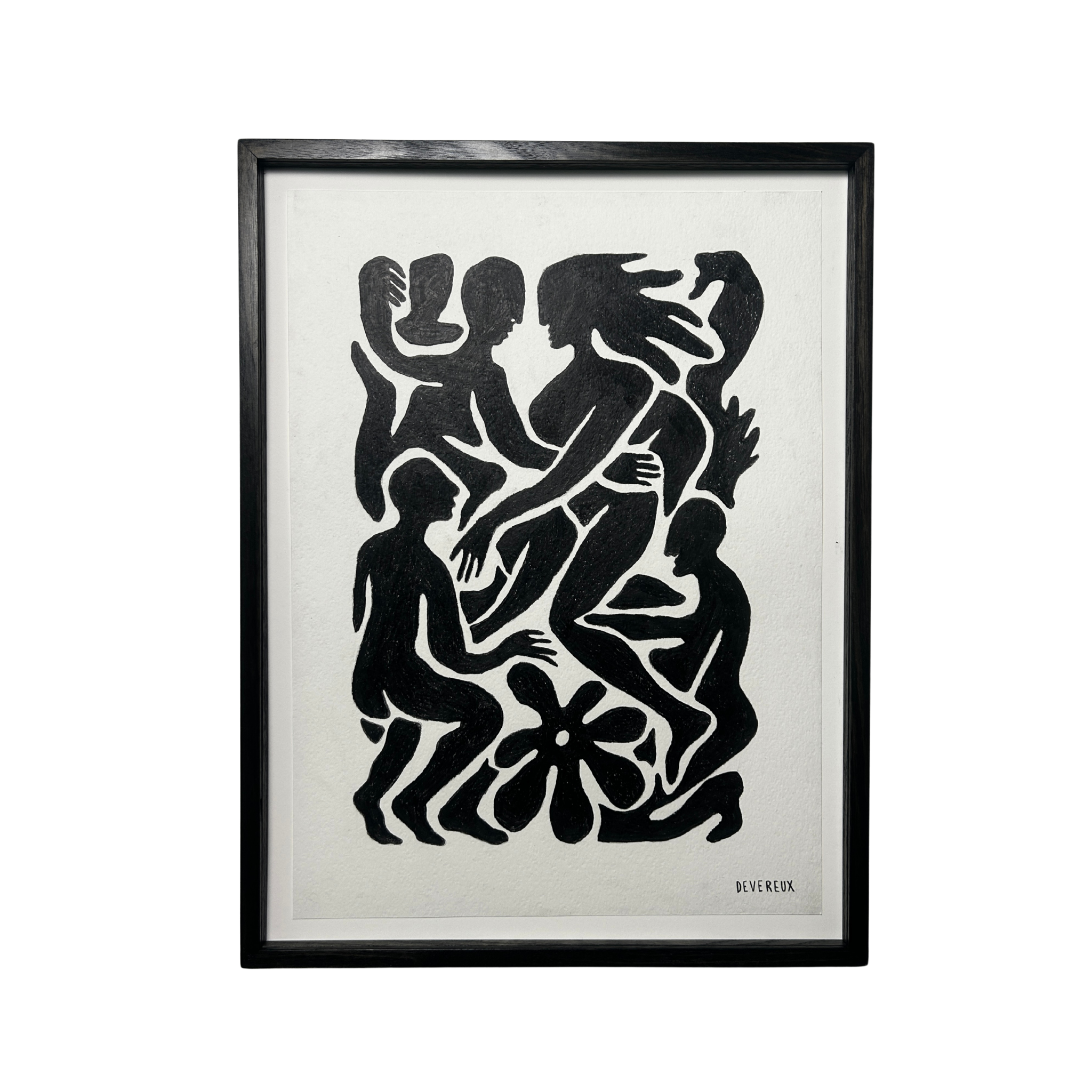 A unique collection of one-of-one black pencil artworks exploring the fluid connection between human forms. Each piece captures the tension, intimacy, and harmony of bodies intertwined in surreal, dreamlike balance.